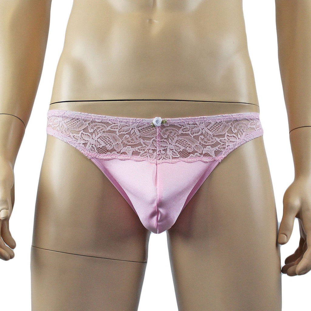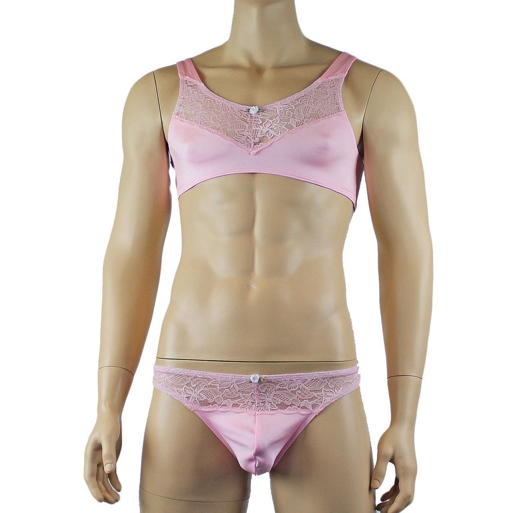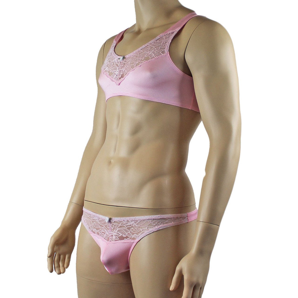 Male Penny Lingerie Bra Top with V Lace front and G string Thong Light Pink