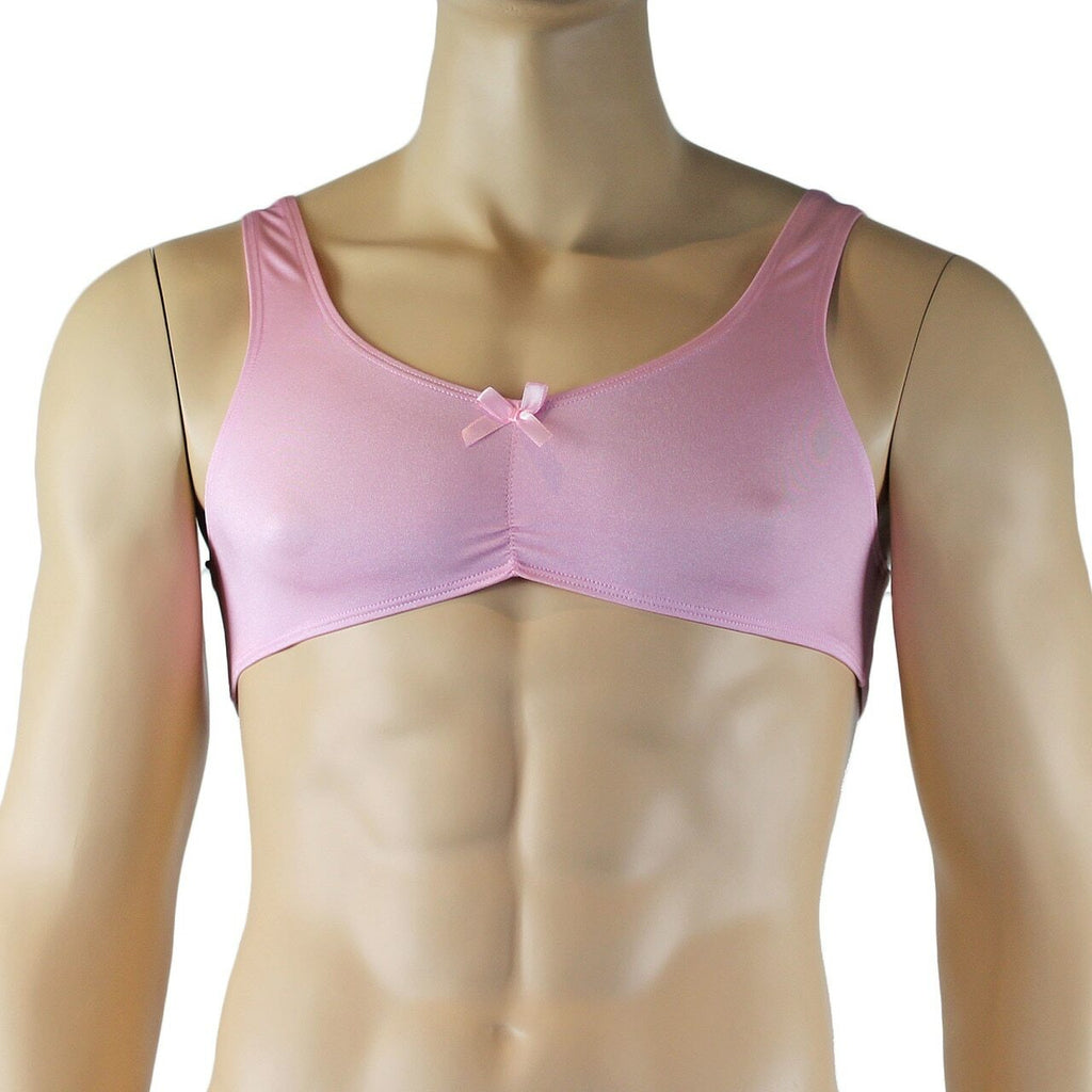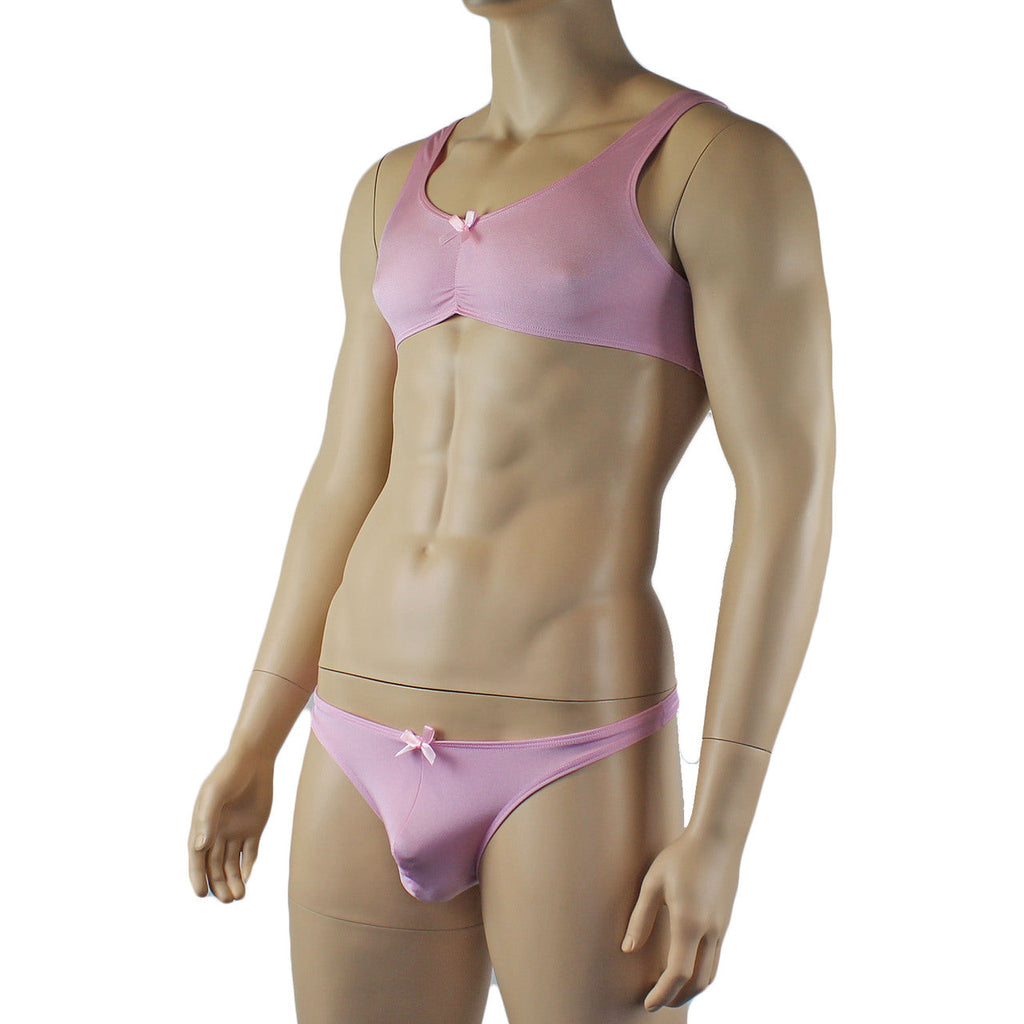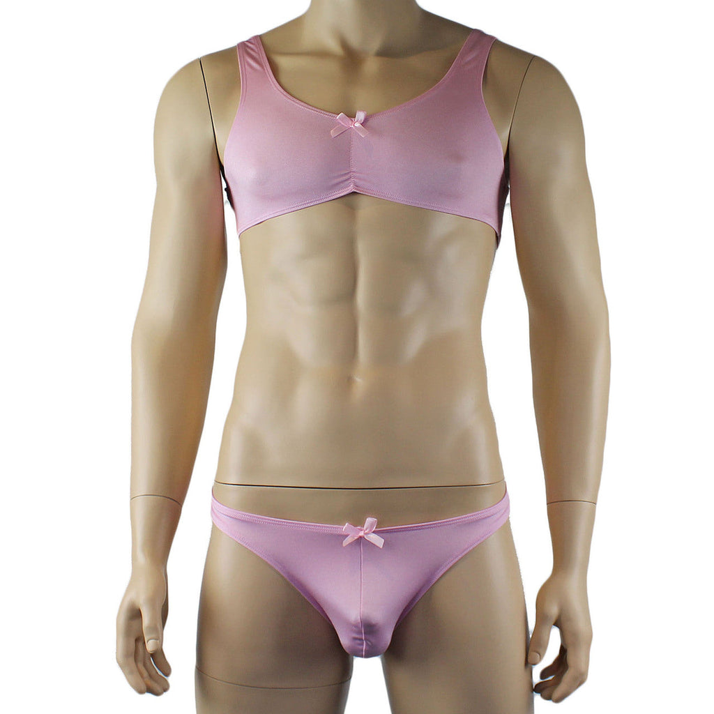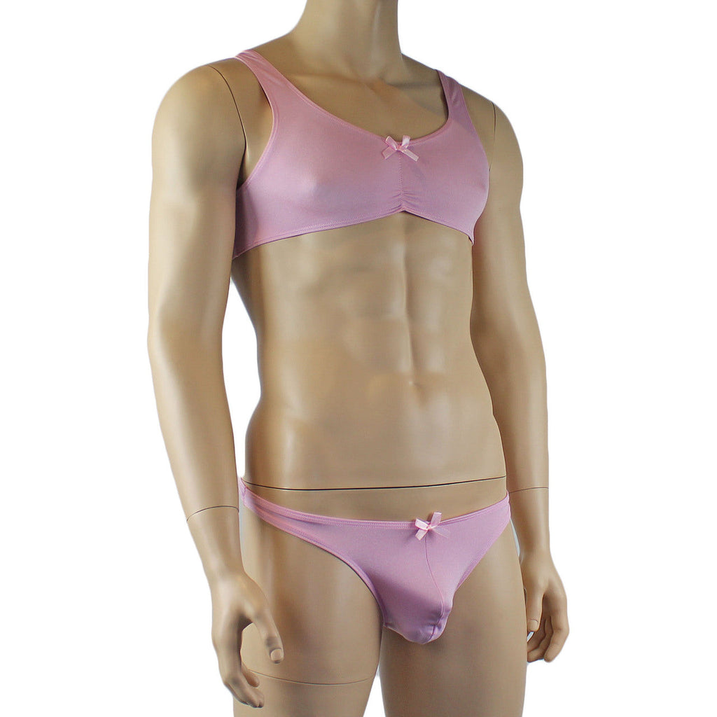 Male Angel Stretch Spandex Bra Top & Matching Thong with Bow Pink