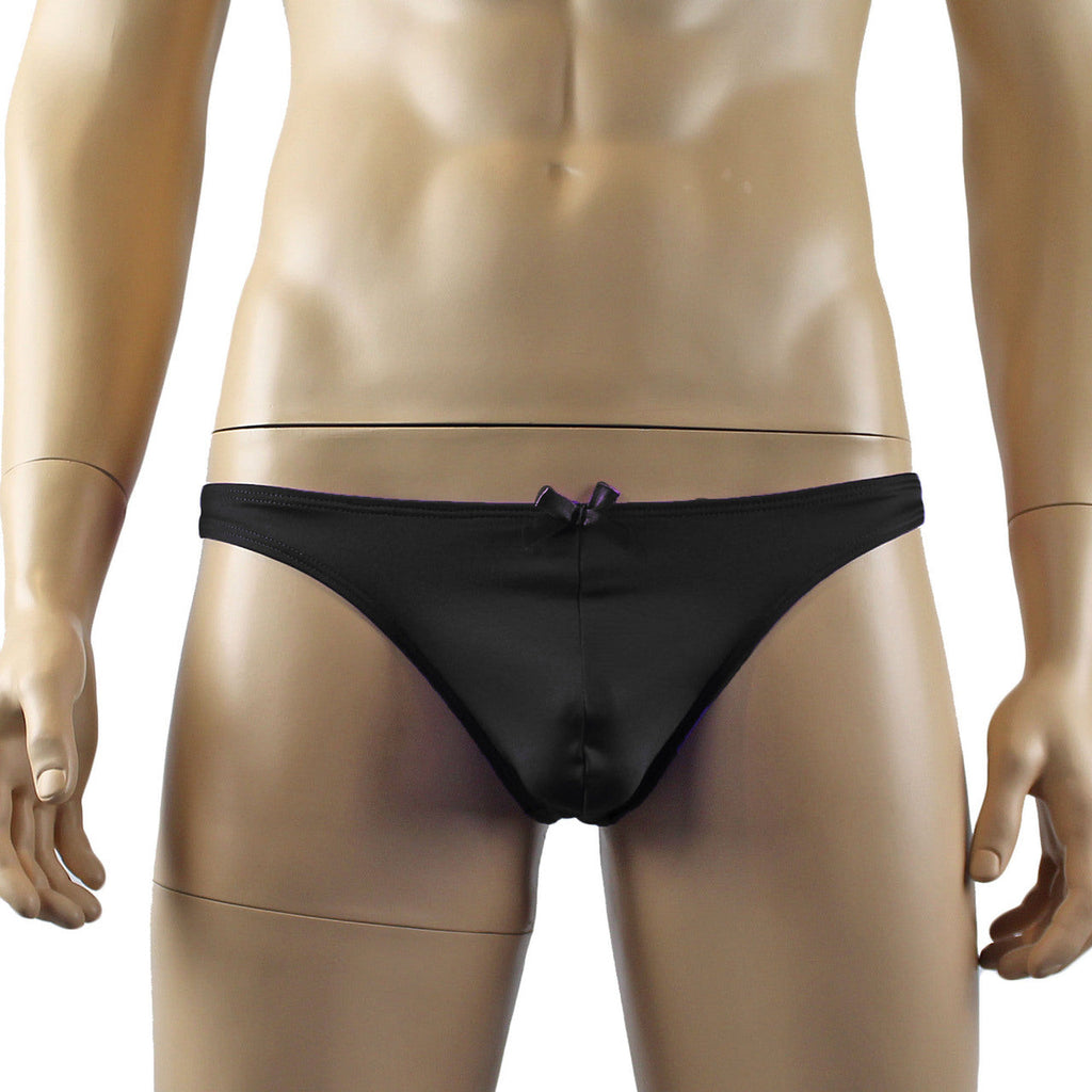 Male Angel Stretch Spandex Bra Top & Matching Thong with Bow Black