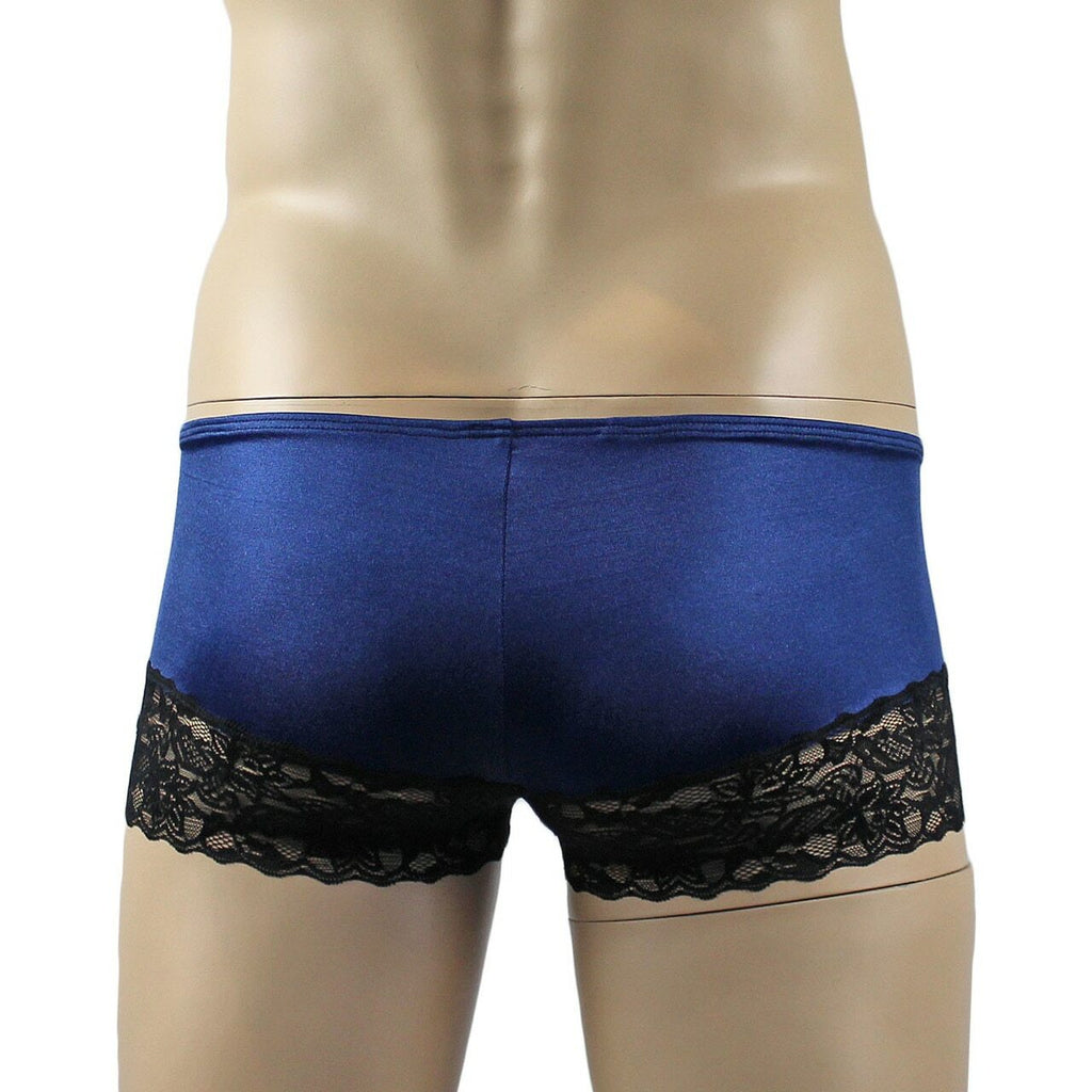 Mens Glamour Spandex & Lace Boxer Brief Shorts with Garterbelt & Stockings Navy Blue & Black