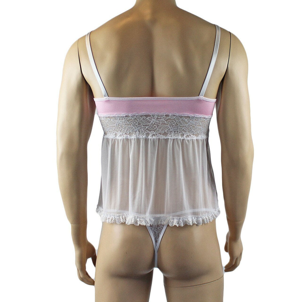 Mens Joanne Mini Babydoll Camisole & G string - Sizes up to 3XL Light Pink & White