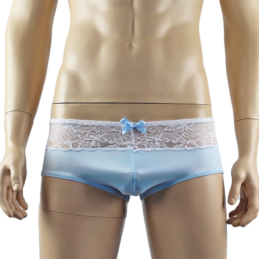 Mens Joanne Underwear Lacey Lovelies Boxer Brief Panties Light Blue and White