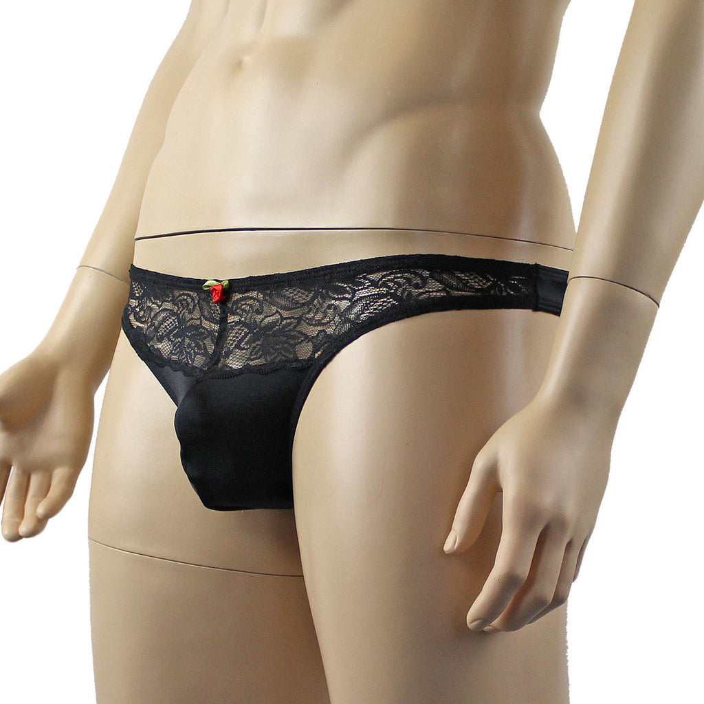 Male Penny Lingerie Stretch Spandex Capri Bikini with Lace Black