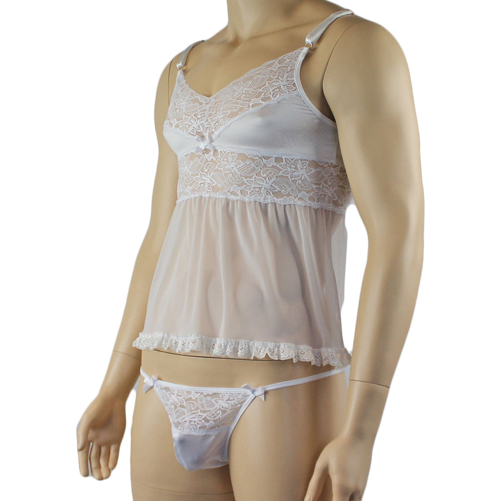 Male Romance Stretch Spandex Mini Babydoll Camisole & G string for Lingerie Men White or Black