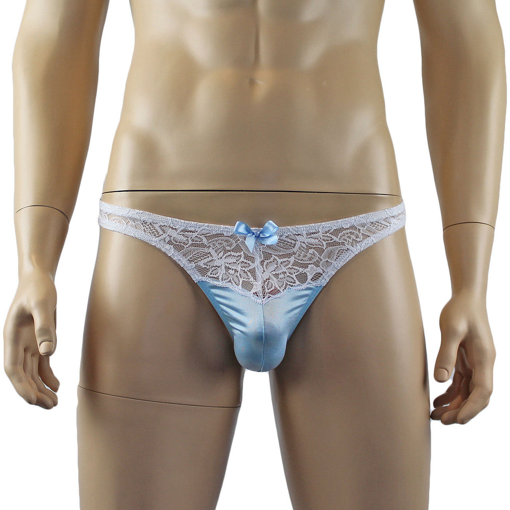 Mens Joanne Underwear Lacey Lovelies Thong Light Blue and White Lace